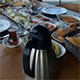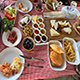 Sosis, sigara böreği, patates kızartması, simit, pişi (lokma), sahanda yumurta, zengin peynir tabağı (beyaz peynir, eski kaşar, taze kaşar, burgu, çeçil ve topi peynir) siyah zeytin, yeşil zeytin, tereyağ, bal-kaymak, tahin-pekmez, reçel çeşitleri, çikolata kreması, lutenitsa sos, kekik ve pul biberli zeytinyağı, domates, salatalık, mevsim meyvesi, taze demlenmiş sınırsız Türk çayı.